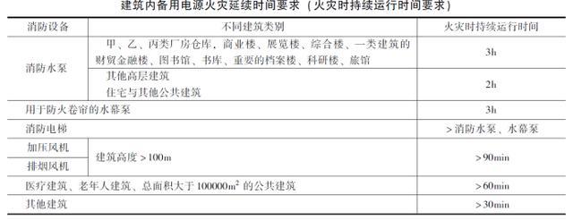 (2)應(yīng)滿足下表火災(zāi)時消防設(shè)備持續(xù)運行時間的要求
