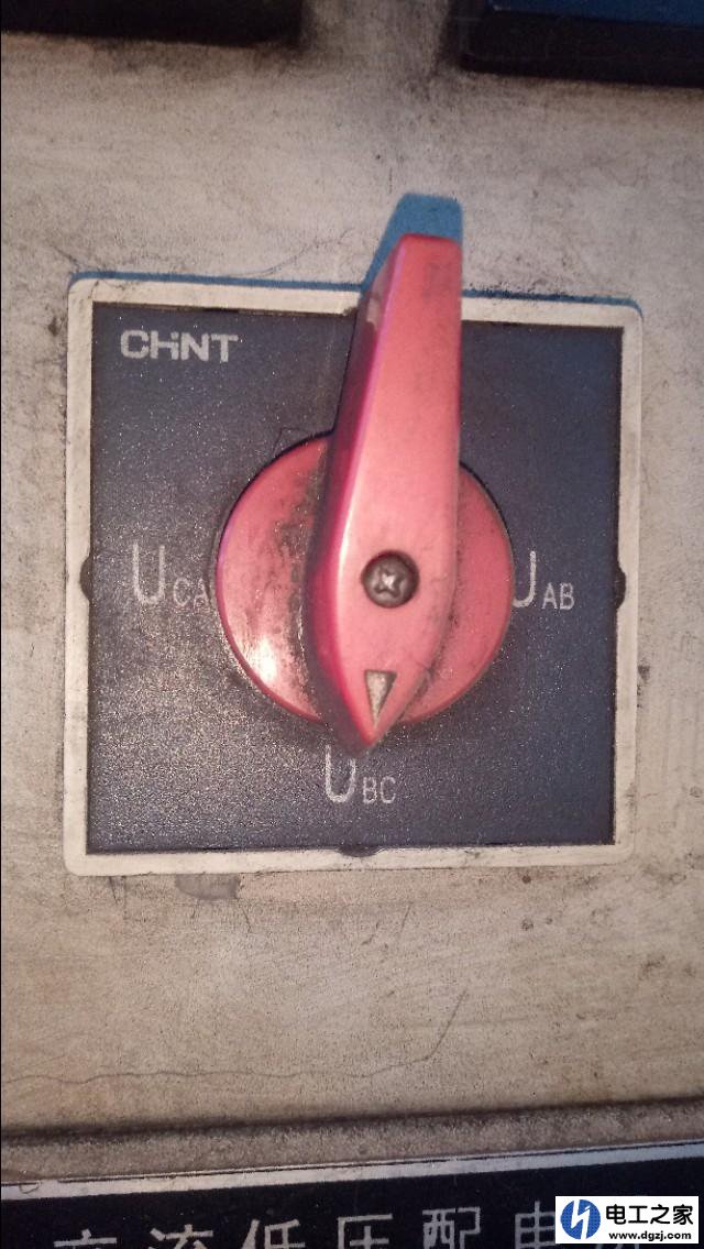 先看一下配電柜上有沒有電壓指示表和一個如下圖所示的電壓檢測開關(guān)。如果電壓表處于零位,轉(zhuǎn)動電壓檢測開關(guān)分別到Uab,Ubc,和Uca,如果電壓表始終處于零位,基本可以判斷該配電柜上沒有電。反之,在電壓檢測開關(guān)的三個位置上,電壓表都指示400伏左右,該配電柜一定有電了。