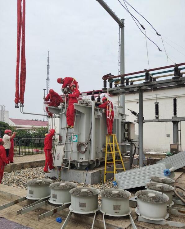 6、110kV變壓器大修吊芯作業(yè),開(kāi)始吊卸散熱片,散熱風(fēng)扇,油枕等附件