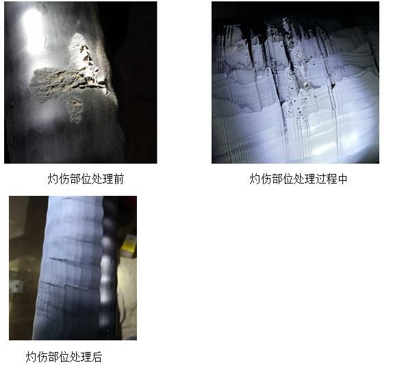 2019年12月1日,對(duì)電纜表面灼傷痕跡處進(jìn)行石墨層、碳化層去除時(shí),未發(fā)現(xiàn)外力破壞現(xiàn)象,而且灼傷處為由外向內(nèi)灼傷,灼傷程度較輕。