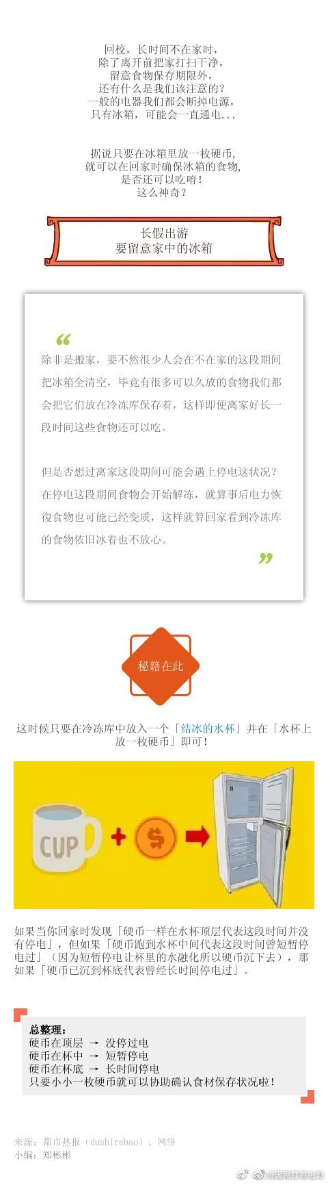 返校常駐,家里沒人,冰箱上記得要放一個硬幣!這是要干嘛?辟邪?導電?NO!NO!NO!這時候只要在冷凍庫中放入一個「結(jié)冰的水杯」并在「水杯上放一枚硬幣」即可!這樣做起到了什么作用呢?