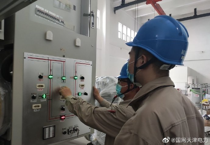 5月25日,天津送變電員工秦勤、郭志君在交流220千伏海河下游變電站傳動(dòng)110kV分段開(kāi)關(guān),確保設(shè)備正常運(yùn)行。 ????
