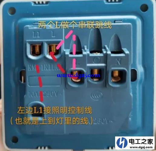 先將電源接入插座的L接線端子里,再用電線引接到燈開關(guān)的L接線端子上,這樣接的插座,開關(guān)可各自獨立工作,互不干擾。