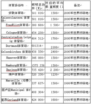 根據(jù)1998、2002、2006年的世界杯體育場的照明總功率,排除Hamburg體育場的“異常數(shù)據(jù)”,平均每個體育場的照明總功率為500千瓦。一般而言,一場比賽的時長是90分鐘(1.5小時),那么一場世界杯足球賽平均需要500×1.5=750度電。一次世界杯要踢64場,也就是48000度,夠一家三口用240個月,也就是20年!