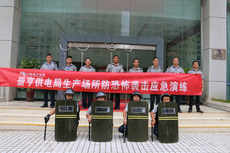 近日,興義冊亨供電局聯(lián)合貴州創(chuàng)諧保安公司在生產調度綜樓場地內模擬一起突發(fā)性恐怖襲擊事件。