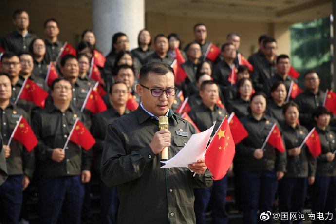 【“壯麗70年·奮斗新時代”升國旗迎國慶】9月27日,在新中國成立70周年即將到來之際,國網(wǎng)新鄭市供電公司百余名干部職工在公司樓前開展“壯麗70年·奮斗新時代”升國旗迎國慶活動。在嘹亮的國歌聲中,鮮艷的五星紅旗冉冉升起,大家懷著崇敬和激動的心情面向國旗行注目禮。最后,在一首《我和我的祖國》的合唱中,祝愿祖國更加繁榮昌盛、和諧富強。