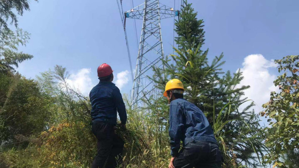 驅(qū)車兩個小時才到達此次巡線的起點——陳旌488線48號桿,48號桿塔豎立在遠處的高山上,需再行走約2公里的山間小道才能到達山腳,放眼望去,一片荊棘叢生?!八蠖嗵幱谏綆X高處,塔桿就是目標,路都是我們一步一步‘探’出來的”,王師傅說完便低頭找著所謂的路,一邊用鐮刀砍著雜草一邊前行,不到半山腰,已是滿頭大汗。他笑著說“現(xiàn)在天氣挺給力的,要是夏天走在這山林中間,天氣悶熱、蚊蟲叮咬,還要防著腳下毒蛇出沒,那可難受了?!?/p>