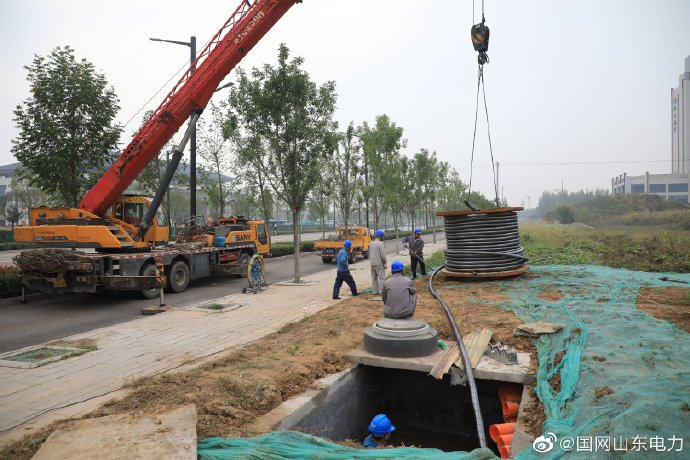 【加快電纜敷設(shè) 服務(wù)客戶用電】10月9日,國網(wǎng)梁山縣供電公司員工為梁山縣文化中心敷設(shè)第5段電纜。該公司以客戶需求為中心,從110千伏鄭垓變電站為文化中心配出一條10千伏專線,全部電纜入地,共分6段進(jìn)行,計(jì)劃10月15日完成電纜敷設(shè)任務(wù),為文化中心運(yùn)營(yíng)提供堅(jiān)強(qiáng)電力保障。 ????