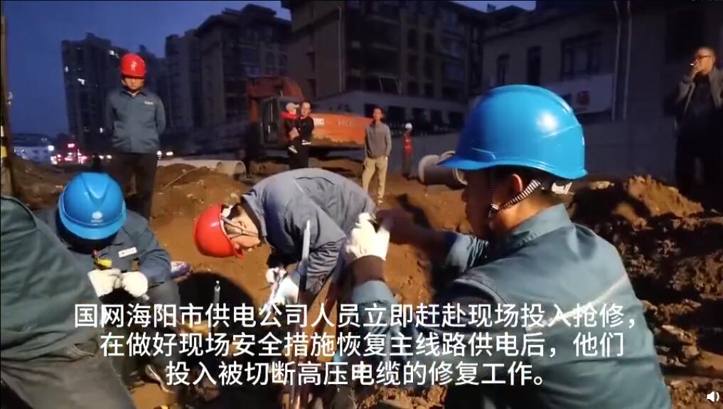 10月16日傍晚,海陽市10千伏東工線40支線電纜被道路施工機(jī)械挖斷,導(dǎo)致兩個臺區(qū)居民電力中斷。國網(wǎng)海陽供電公司員工迅速趕赴現(xiàn)場恢復(fù)主線路供電后,全力投入搶修工作。經(jīng)過一個半小時的緊張施工,線路搶修完畢,于18時20分恢復(fù)電力供應(yīng)。