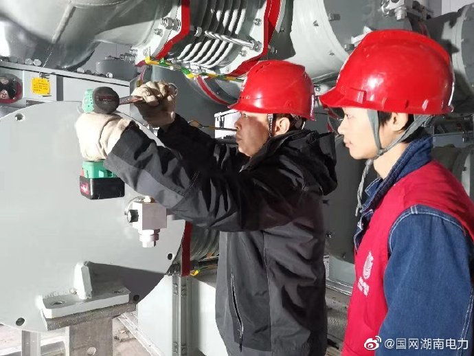 12月31日,湖南省送變電工程有限公司員工在長(zhǎng)沙黃花220千伏變電站新建工程進(jìn)行GIS組合電氣安裝工作。
