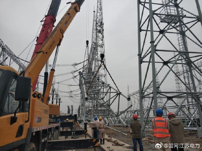 1月5日,在1000千伏東吳變電站江蘇側(cè)第三臺主變擴(kuò)建工程施工現(xiàn)場,江蘇省送變電有限公司施工人員正按計劃進(jìn)行1000千伏格構(gòu)式構(gòu)架吊裝工作。近日來蘇州地區(qū)連日陰雨,天氣陰冷潮濕,無形中增加了構(gòu)架吊裝難度。施工人員不畏嚴(yán)寒,利用雨停間隙順利完成1000千伏格構(gòu)式構(gòu)架柱吊裝,為后續(xù)構(gòu)架梁停電吊裝爭取寶貴時間。