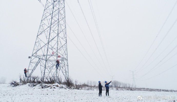 1月9日,在安徽省滁州市定遠(yuǎn)縣池河鎮(zhèn)高劉村境內(nèi),國(guó)網(wǎng)定遠(yuǎn)縣供電公司員工正在巡視定嘉220千伏供電線路。1月8日晚,受到新一輪冷空氣影響,安徽省滁州市飄起大雪。安徽省滁州市部分地區(qū)的積雪達(dá)到4至7厘米,影響了供電線路的安全運(yùn)行。滁州市供電公司派出多個(gè)專(zhuān)業(yè)技術(shù)巡查工作小組,冒著嚴(yán)寒踏雪巡查,迅速處理雪后的電力安全隱患,保障線路的安全運(yùn)行。