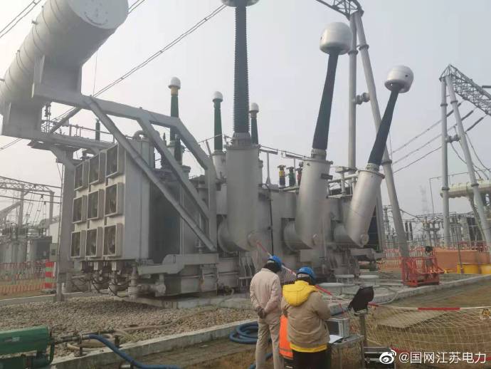 【主變退役 不忘體檢】1月13至14日,江蘇省送變電有限公司特殊試驗人員在南通500千伏三官殿變進行舊主變暫退役的局部放電試驗。原1號主變已經(jīng)為南通電網(wǎng)穩(wěn)定運行18年,現(xiàn)已不再滿足用電需求,工作人員不畏嚴(yán)寒,順利完成相關(guān)試驗 ????