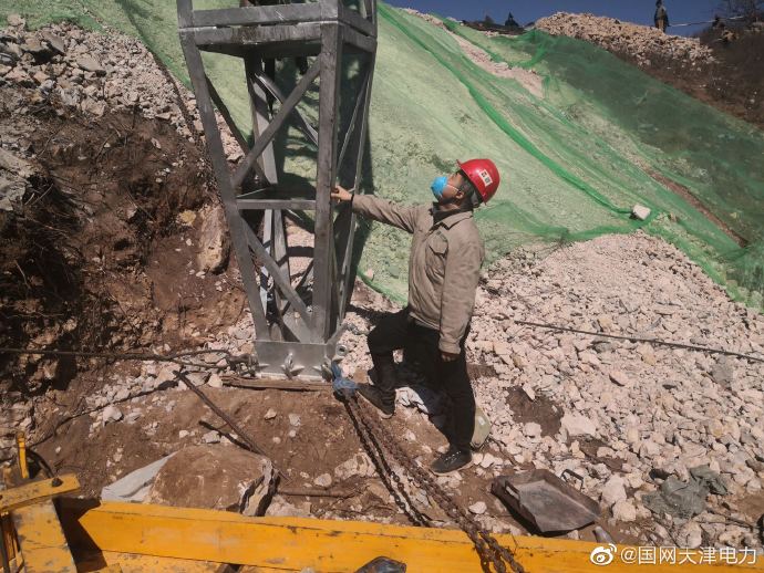 3月25日,天津送變電公司員工于彥秋在張北至雄安1000千伏特高壓交流輸變電工程線路工程3S069查看懸浮抱桿,確保保障現場作業(yè)安全。 ????