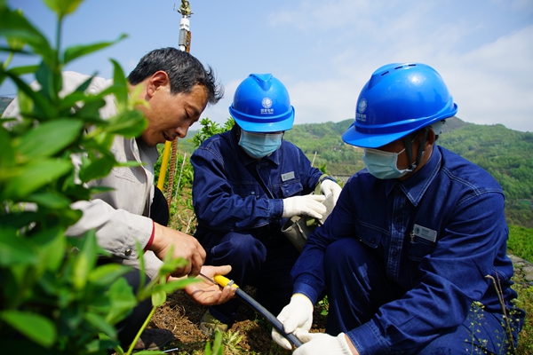 3月25日,正值春耕春灌的關(guān)鍵時(shí)期,國網(wǎng)旬陽縣供電公司蜀河供電所的員工來到蜀河鎮(zhèn)郅家灣村,為貧困戶鄧治琪承包的金銀花基地檢查灌溉用電線路,并幫助他安裝調(diào)試灌溉系統(tǒng)。