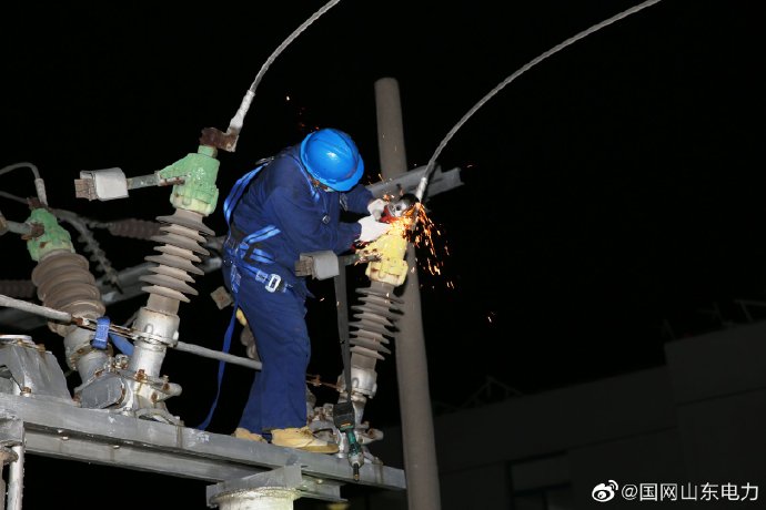 【夜間更換刀閘 提高設(shè)備健康水平】4月26日凌晨, 國網(wǎng)萊西市供電公司12名運維檢修人員在12組探照燈的幫助下,對35千伏日莊變電站的7組刀閘開展整體更換工作,確保電網(wǎng)設(shè)備安全迎峰度夏。經(jīng)過四個小時的奮戰(zhàn),所有老化刀閘全部更換完畢,提升了變電站供電設(shè)備健康水平,保障電網(wǎng)安全可靠運行。 ????