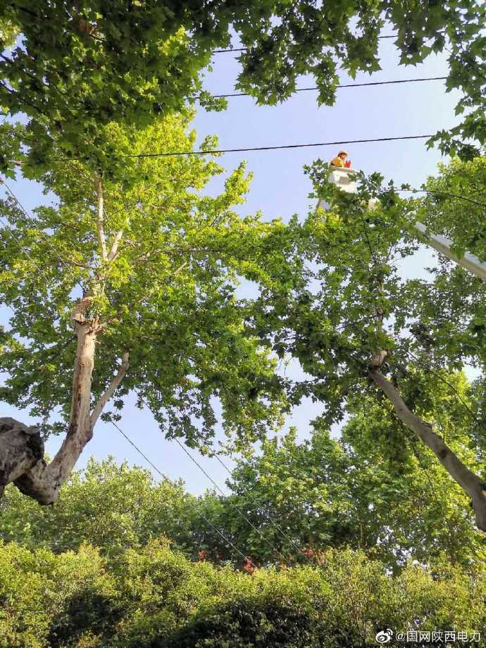 5月23日,國網(wǎng)西安供電公司市南供電分公司配網(wǎng)運(yùn)檢二班在發(fā)現(xiàn)136雁六線25號至26號樹線矛盾后,立即聯(lián)系帶電班緊急消缺,保證周邊用戶安全可靠用電。 ????