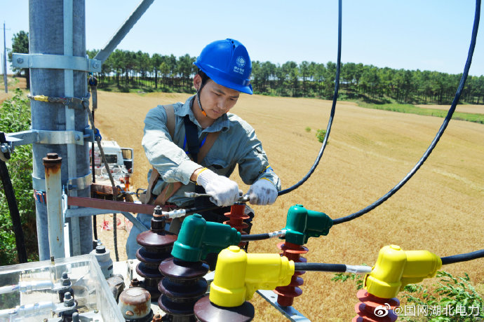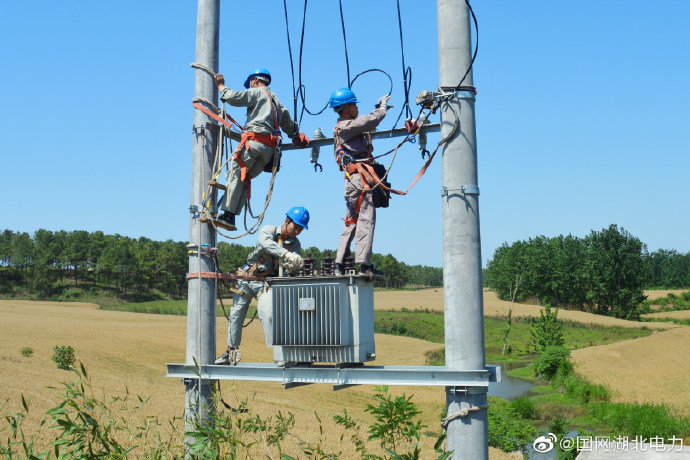 5月22日,在老河口市孟樓鎮(zhèn)楊崗村,來(lái)自國(guó)網(wǎng)老河口市供電公司工程一部的施工人員為楊崗村泵站架設(shè)一臺(tái)80千伏安的抽水專用變壓器,并完成700米專線的架設(shè),滿足楊崗村500畝稻田的灌溉用電需求。