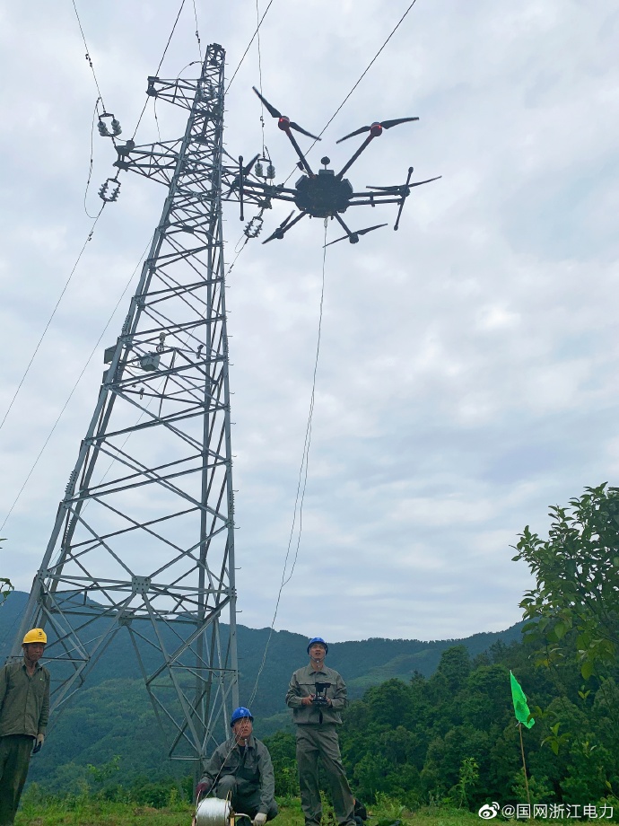 5月28日,在溫嶺市大溪鎮(zhèn)西部山區(qū)施工現(xiàn)場,國網(wǎng)溫嶺市供電公司施工員工同時使用兩架無人機(jī)僅用時6分鐘,就完成了總長度1350米的跨山部分引線交互工作。這是該公司首次使用兩架無人機(jī)協(xié)同接力作業(yè)。此次作業(yè)如采用傳統(tǒng)放線方法,需120個人,用3天才能完成。利用無人機(jī)協(xié)同接力作業(yè),只需要38個人,10小時就可以完成,顯著提高工作效率。