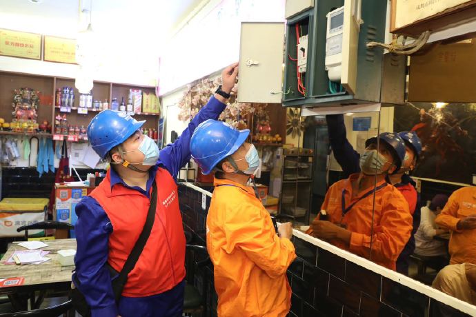 晚上八點(diǎn),華燈初上,成都較場(chǎng)壩街上,各式各樣的美食琳瑯滿目。為確保商戶用電安全,國網(wǎng)四川電力?“連心橋”(成都城東)共產(chǎn)黨員服務(wù)隊(duì)走進(jìn)夜晚的街巷,為各個(gè)攤位檢查用電安全情況、排查隱患、發(fā)放用電安全宣傳單。
