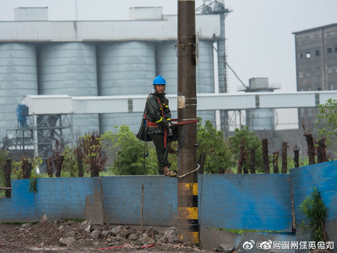 6月15日上午10時,國網(wǎng)靖江市供電公司組織搶修人員冒雨搶修遭雷擊的10千伏文鎮(zhèn)線上六2號變壓器支線,確??蛻艋謴?fù)用電。 ????