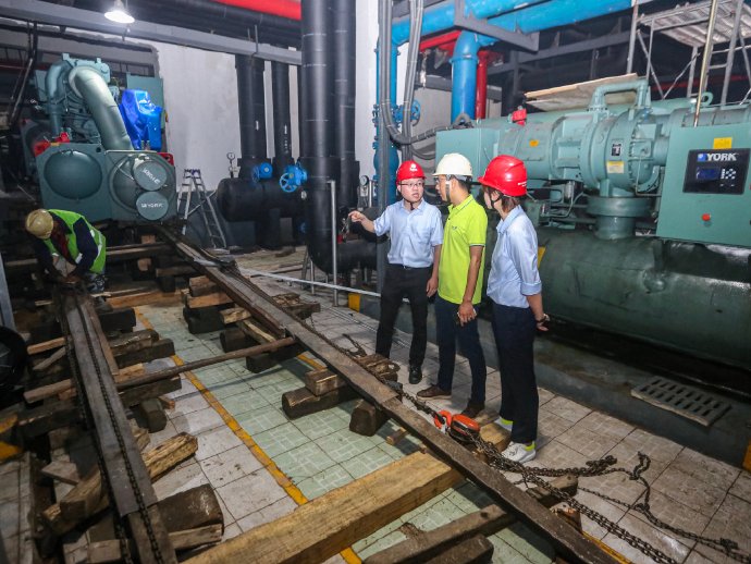 6月27日,國網(wǎng)寧波供電公司首個(gè)園區(qū)空調(diào)節(jié)能改造項(xiàng)目在銀晨國際大廈地下室內(nèi)順利竣工。由于運(yùn)行年數(shù)已久,銀晨國際大廈園區(qū)內(nèi)的空調(diào)系統(tǒng)水管管路及其保溫部分明顯破損,水泵、冷卻塔等設(shè)備有故障,制冷效果差,能耗壓力大。為積極響應(yīng)政府提出的“節(jié)能降耗”、“能源雙控”工作要求,進(jìn)一步推動綠色建筑行動,國網(wǎng)(寧波)綜合能源服務(wù)有限公司定制采用合同能源管理模式的節(jié)能改造方案,通過對中央空調(diào)系統(tǒng)的節(jié)能改造及智控管理,大幅降低用戶能耗。趁著端午假期,該公司加班加點(diǎn)對園區(qū)內(nèi)的空調(diào)系統(tǒng)進(jìn)行了改造升級,全力保障銀晨國際園區(qū)內(nèi)租戶能度過清涼一夏。