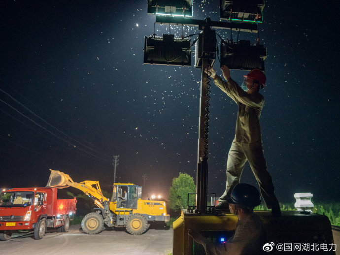 “一、二、三,嘿呀……”7月10日凌晨,武漢漢南區(qū)供電公司的工作人員喊著號(hào)子,奮力將移動(dòng)照明燈塔推到路邊高臺(tái)之上,為銀蓮湖堤段通津河堤搶險(xiǎn)加固兩個(gè)砂石裝載點(diǎn)提供現(xiàn)場(chǎng)照明,引來(lái)蚊蟲(chóng)大軍的“密集轟炸”,大的飛蟲(chóng)鉆進(jìn)袖口、衣領(lǐng),小的蚊蟲(chóng)飛進(jìn)鼻孔、嘴巴,有同事戲稱(chēng):大家收到了蚊蟲(chóng)贈(zèng)送的“大紅包”。