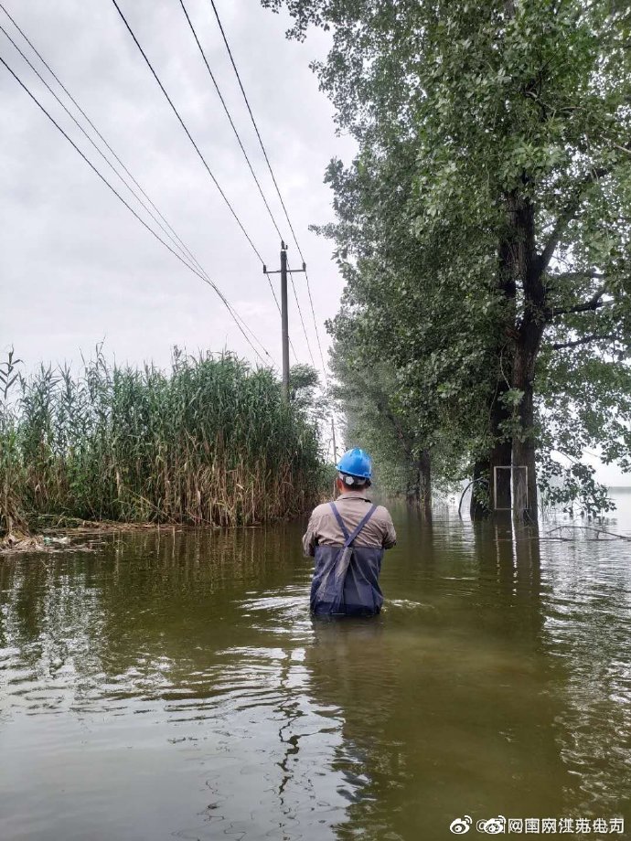 7月12日,國網(wǎng)南京市江北新區(qū)供電公司工作人員身穿防水服,對龍袍涉水10千伏農(nóng)場線及其供電設(shè)備進(jìn)開展全面檢查,重點(diǎn)記錄跟蹤土質(zhì)松軟地區(qū)以及涉水桿塔、桿基基礎(chǔ)情況,確保第一時間消除可能危及線路安全的各類隱患。