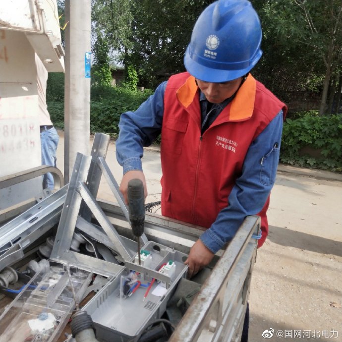 全力攻堅(jiān)“煤改電”,紅色馬甲沖一線,履行責(zé)任踐承諾,打贏藍(lán)天保衛(wèi)戰(zhàn)。8月23日,國(guó)網(wǎng)定州市供電公司新立供電所的紅馬甲們,正在楊家莊村“煤改電”施工現(xiàn)場(chǎng),進(jìn)行低壓線路設(shè)備補(bǔ)強(qiáng),全力服務(wù)群眾綠色低碳新生活。(張鵬飛 李燁)