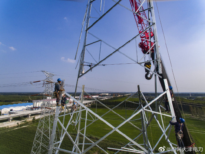 9月1日,天津送變電公司員工在渠陽(yáng)~南蔡500千伏線路工程現(xiàn)場(chǎng)進(jìn)行組塔施工,保證工程安全有序進(jìn)行。