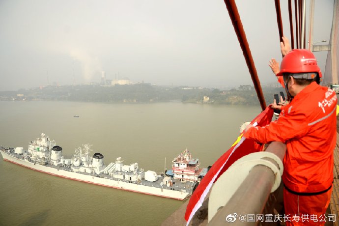 10月23日上午10點(diǎn)20分,剛剛退役的南海艦隊(duì)某驅(qū)逐艦支隊(duì)舷號(hào)166的驅(qū)逐艦(珠海艦)如約而至到達(dá)長(zhǎng)壽河街濱江路段。國(guó)網(wǎng)重慶長(zhǎng)壽供電公司員工,用自己特殊的方式為“珠海艦”接風(fēng)洗塵。