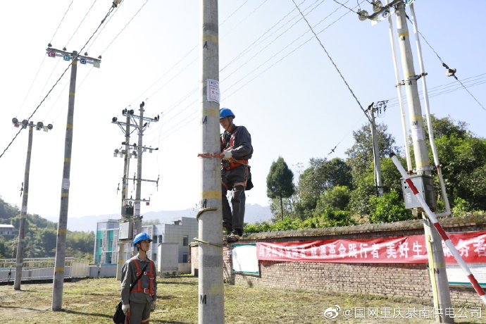 【秋安秋檢】國(guó)網(wǎng)重慶綦南供電公司通惠供電所工作人員利用閑暇時(shí)間在實(shí)訓(xùn)基地開(kāi)展登桿培訓(xùn) .