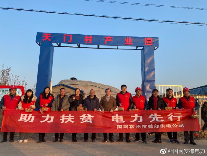 12月4日,在安徽宿州市宿州市埇橋區(qū)大店鎮(zhèn)天門村特色農(nóng)業(yè)扶貧產(chǎn)業(yè)園,國網(wǎng)宿州市城郊供電公司黨員服務(wù)隊(duì)正在幫助進(jìn)行五彩圣女果的采摘和銷售,幫助其檢查線路。