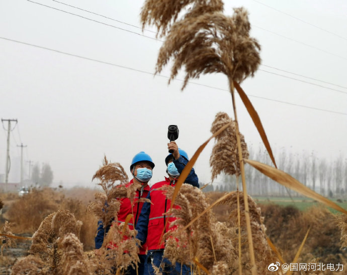 寒冷冬日,陰霾天空,電力小哥用雙腳去溫暖前行的路,點燃未來的希望。12月9日,國網孟村回族自治縣供電公司員工對保供暖線路進行特巡。(李愛玲)