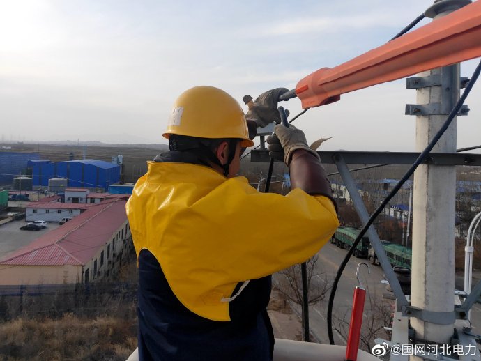 披上“鎧甲”,手執(zhí)“武器”,戴上安全帽,電力“小黃人”再上戰(zhàn)場(chǎng)。12月13日,國(guó)網(wǎng)內(nèi)丘縣供電公司員工對(duì)10千伏鋼廠線050路125號(hào)桿進(jìn)行帶電接引工作,全力保障用戶(hù)安全用電,溫暖度冬。(張淑軍) ????