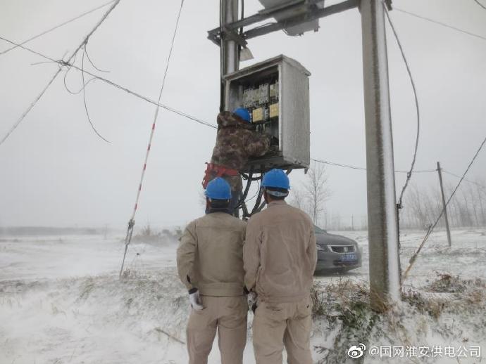【頂風(fēng)雪 送光明 】12月29日,國(guó)網(wǎng)漣水縣供電公司五港供電所孫莊配變發(fā)生故障,搶修隊(duì)員迅速攜帶工具,頂著風(fēng)雪前往,就地做好安全措施,及時(shí)消缺設(shè)備隱患,確保居民安全用電。