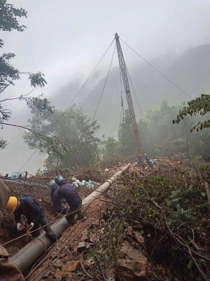 6月18日,在婁底市新化爐35kV線路工程施工現(xiàn)場(chǎng),來(lái)自?shī)涞坠╇姽拘窃措娊瘓F(tuán)輸變電分公司的十多名施工人員在深山里有序開(kāi)展4號(hào)電桿立桿工作,力保該工程按期完成。