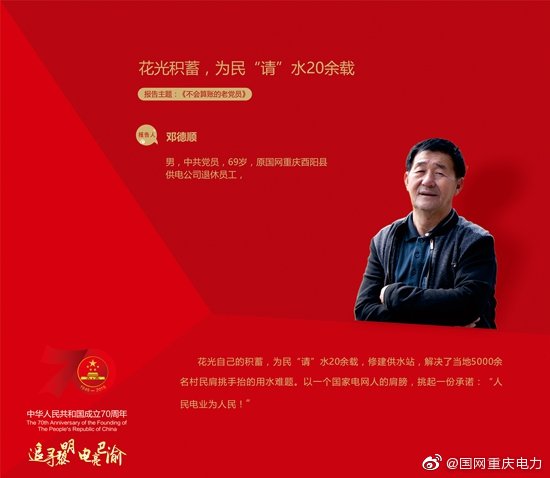 36年前,鄧德順成為酉陽(yáng)縣供電公司的一名駕駛員,勤勞能干,業(yè)余時(shí)間去打鐵、理發(fā)、跑運(yùn)輸,很快就攢下一筆存款,如果故事就這樣發(fā)展下去,鄧德順現(xiàn)在的生活會(huì)是富足又安逸的。但在1997年春節(jié),一塊兒長(zhǎng)大的村民石邦祿挑水摔折了腿,讓鄧德順惦記起還吃不起自來(lái)水的鄉(xiāng)親們,他認(rèn)識(shí)到如果說(shuō)自己這些年都是在被別人幫助,在積蓄能量,那這時(shí)也到了自己發(fā)光發(fā)熱,去幫助別人的時(shí)候了。說(shuō)干就干,鄧德順立馬就張羅著買管道修水站,下定決心要解決家鄉(xiāng)吃水難問(wèn)題。這一干,就是二十多年,鄧德順投進(jìn)去了400萬(wàn),光是管道就換了三次,從小管到大管,從易腐蝕的鐵管到夠堅(jiān)固的膠管……從小有積蓄到賣掉房子還欠下外債,這筆賬鄧德順都不想算。如今,水站運(yùn)作上了軌道, 4000多人的吃水問(wèn)題解決了。老黨員鄧德順還是不算賬。水費(fèi)按戶收,一年只收120,孤寡老人、貧困戶、退伍軍人家庭水費(fèi)全免,而每年光維修維護(hù)費(fèi)用就得一萬(wàn)多, 所以2010年退休后鄧德順就干脆搬回村里來(lái)自己搞維護(hù)。鄧德順總覺(jué)得,這就是自己作為一個(gè)老黨員責(zé)無(wú)旁貸的使命,覺(jué)得這件事就應(yīng)該由自己擔(dān)當(dāng)起來(lái)。如今,他還在盤算著招商引資讓家鄉(xiāng)甘甜的純凈水成為產(chǎn)品,走出高莊村,給村民們帶來(lái)更多的就業(yè)機(jī)會(huì)和經(jīng)濟(jì)收入。從自發(fā)到自覺(jué),從受助到助人,從蓄電到發(fā)電,談起這些年的付出,鄧德順的話很樸實(shí):這就是一個(gè)共產(chǎn)黨員應(yīng)該做的。