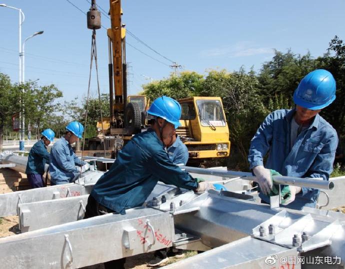 7月3日,在110千伏石虎站10千伏南潘線(xiàn)招辛線(xiàn)雙回架設(shè)施工現(xiàn)場(chǎng),國(guó)網(wǎng)招遠(yuǎn)市供電公司施工人員冒著37攝氏度高溫進(jìn)行立塔作業(yè),該工程共計(jì)立塔26基,旨在減輕石虎站供電壓力,滿(mǎn)足城區(qū)負(fù)荷增長(zhǎng)需求,改善110千伏電網(wǎng)結(jié)構(gòu),提高供電可靠性。 ????