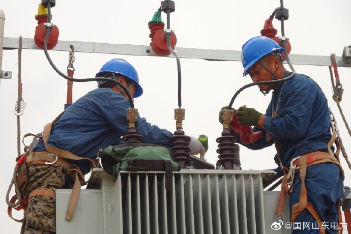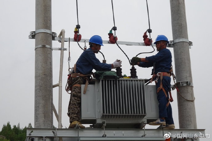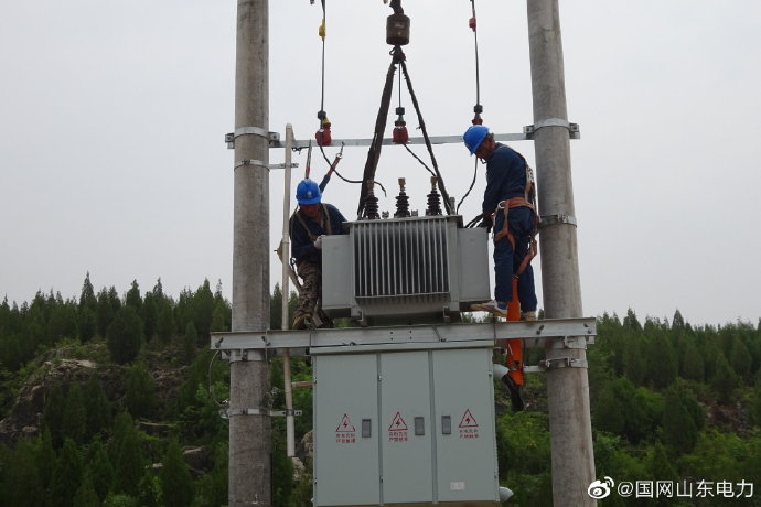【配變?cè)鋈?助力客戶用電可靠】7月9日,國(guó)網(wǎng)沂源縣供電公司6名工作人員冒著35度的高溫在東里鎮(zhèn)院峪水廠為客戶更換配電變壓器,由原來的一臺(tái)100千伏安變壓器增容為400千伏安,經(jīng)過兩個(gè)多小時(shí)的緊張工作,改造完成。增容改造后,滿足了客戶日益增長(zhǎng)的用電需求,及時(shí)確保了該水廠正常用電,助力客戶生產(chǎn)用電可靠。