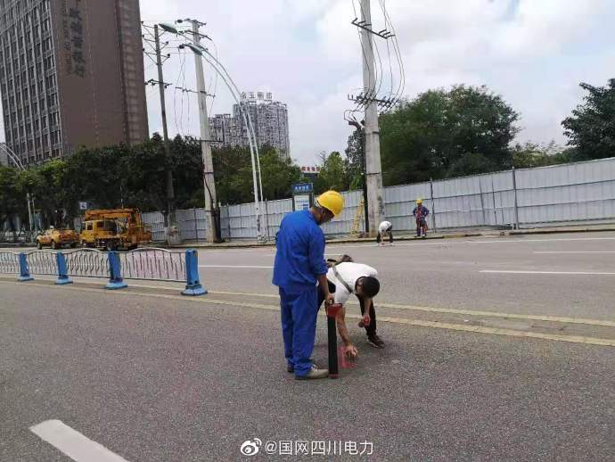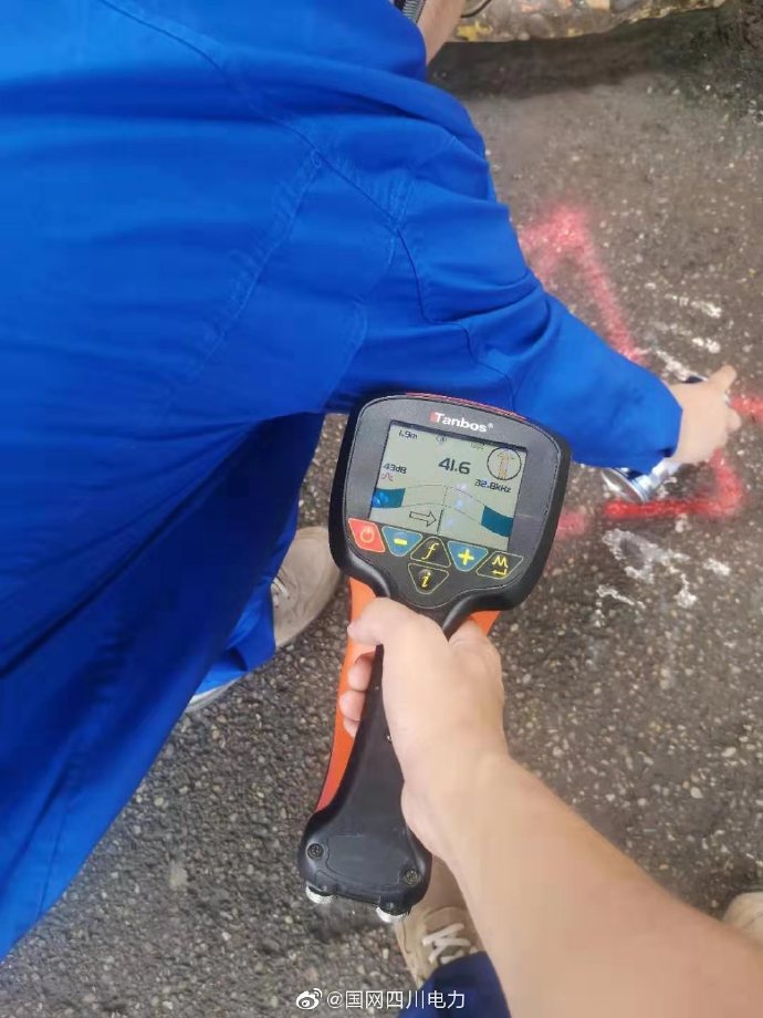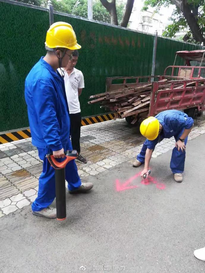 快看,供電叔叔亂涂亂畫!7月24日上午,國網(wǎng)南充供電公司員工使用電纜路徑探測儀在北干道探測電纜走向,并噴漆標(biāo)記,避免北干道綜合提升改造施工外破挖傷電纜造成停電事故。 ????