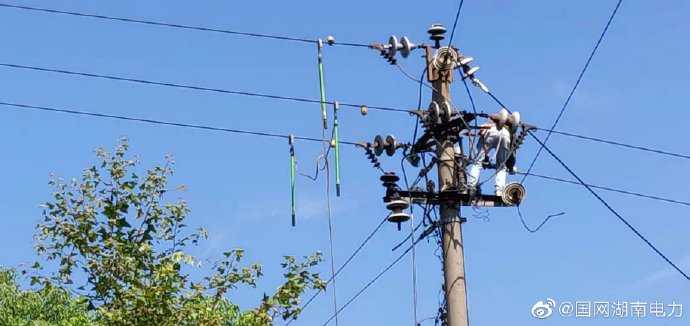 7月26日,國網衡陽供電配電檢修公司電力蜀黍對10kV烏金線#037桿~#040桿進行更換瓷瓶、絕緣導線、加裝拉線工作。