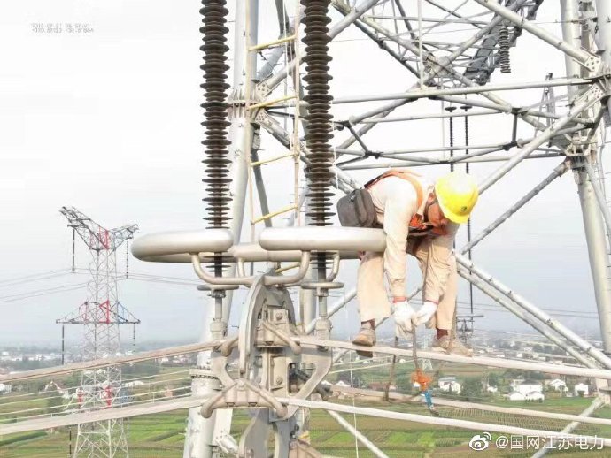 【無(wú)懼高溫 奮戰(zhàn)一線】7月31日,江蘇省送變電有限公司特高壓運(yùn)檢分公司高空人員正在對(duì)1000千伏泰吳線所有塔身及間隔棒上的鳥窩進(jìn)行全面清除,以百分百健康的狀態(tài)迎接8月份的線路參數(shù)測(cè)試試驗(yàn)。由于時(shí)間緊、任務(wù)重,我們高空人員“扛著”高溫,爭(zhēng)分奪秒做好消缺工作,與太陽(yáng)賽跑、與時(shí)間賽跑,確保泰吳線“無(wú)缺陷”投運(yùn)目標(biāo)的實(shí)現(xiàn)。