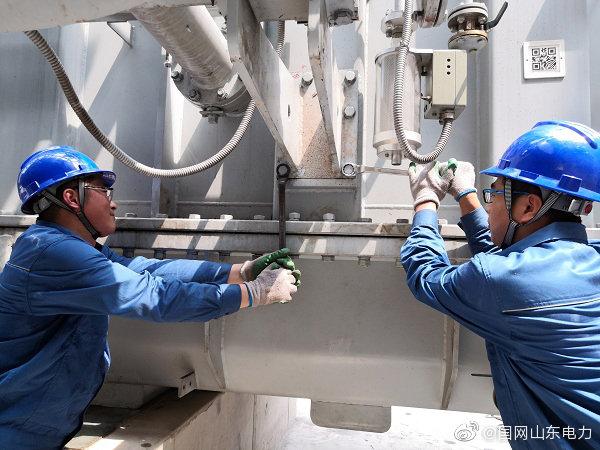 【高溫堅守作業(yè) 促電網(wǎng)工程早日投產(chǎn)】7月31日,國網(wǎng)德州供電公司工作人員完成220千伏晏城站1號主變壓器安裝工作。本次作業(yè)從變壓器進場到安裝完成歷時7天的時間,該工程完工后將為220千齊河伏晏城變電站新增一處電源點,有效提升該站的供電可靠性。 ????