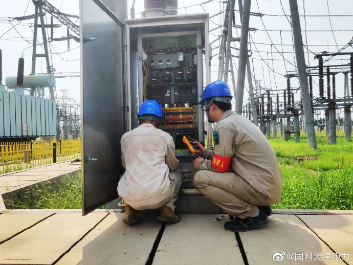 7月31日,國網(wǎng)天津檢修公司二次檢修中心王耘與工程施工人員在上古林220千伏變電站檢查端子箱封堵情況與加熱驅(qū)潮裝置運行工況。 ????