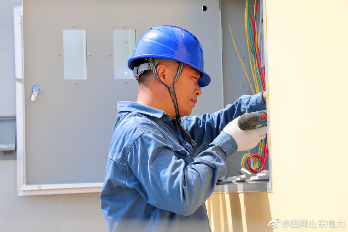 【濕透一件工作服需要多長時(shí)間】8月7日,國網(wǎng)即墨市供電公司員工為即墨開發(fā)區(qū)10千伏黃家線某客戶公司新裝630千伏安箱變計(jì)量裝置一臺(tái)。工作人員頂著火辣辣的烈日,在室外開展工作,僅十五分鐘,一件干凈的工作服就完全被汗水浸透。 ????