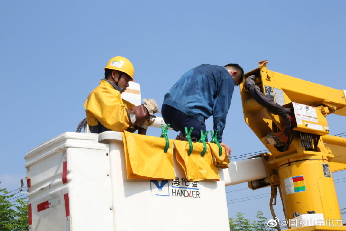 【實施帶電接火 保障客戶用電】8月21日上午,國網(wǎng)無棣縣供電公司帶電作業(yè)人員對10千伏水灣線28號桿實施帶電接火。在做好安全防護措施后,工作人員冒著高溫經(jīng)過40分鐘高空工作,順利完成帶電接火任務(wù),全力保障了客戶業(yè)擴工程快速用電。 ????