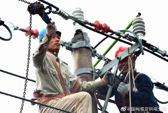 【冒雨搶修顯真情】 8月27日上午,淮安盱眙縣供電公司組織員工冒雨搶修遭雷擊損壞的穆店鎮(zhèn)10千伏179加油站線。 據(jù)悉,當日上午8時41分,穆店鎮(zhèn)10千伏179加油站線2號桿遭雷擊,B相、C相導線同時斷落,盱眙縣供電公司迅速組織人員冒雨搶修,9時55分完成搶修任務(wù),及時恢復正常供電。