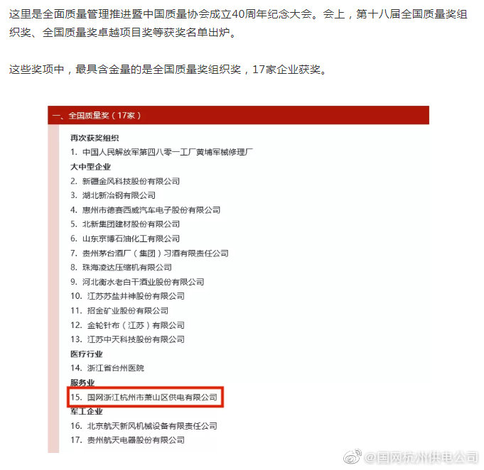 【國家級榮譽(yù),這家縣級供電公司怎么拿到的?】高質(zhì)量不是一朝就能“煉”成的,自2010年國網(wǎng)杭州市蕭山區(qū)供電公司導(dǎo)入卓越績效模式,實(shí)施高質(zhì)量發(fā)展戰(zhàn)略以來,9年的艱苦卓絕的努力,獲得了國家的認(rèn)可,獲得了客戶的認(rèn)可,獲得了未來高質(zhì)量發(fā)展的無限可能。