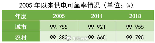 近10余年來,城市、農(nóng)村供電可靠率分別從2005年的99.755%、99.382%提高到99.955%、99.795%,客戶年均停電時間分別從21小時、54小時下降到4小時、18小時。尤其是農(nóng)村電網(wǎng)實現(xiàn)了跨越發(fā)展,為農(nóng)村經(jīng)濟(jì)社會發(fā)展、農(nóng)民脫貧致富注入了源動力。